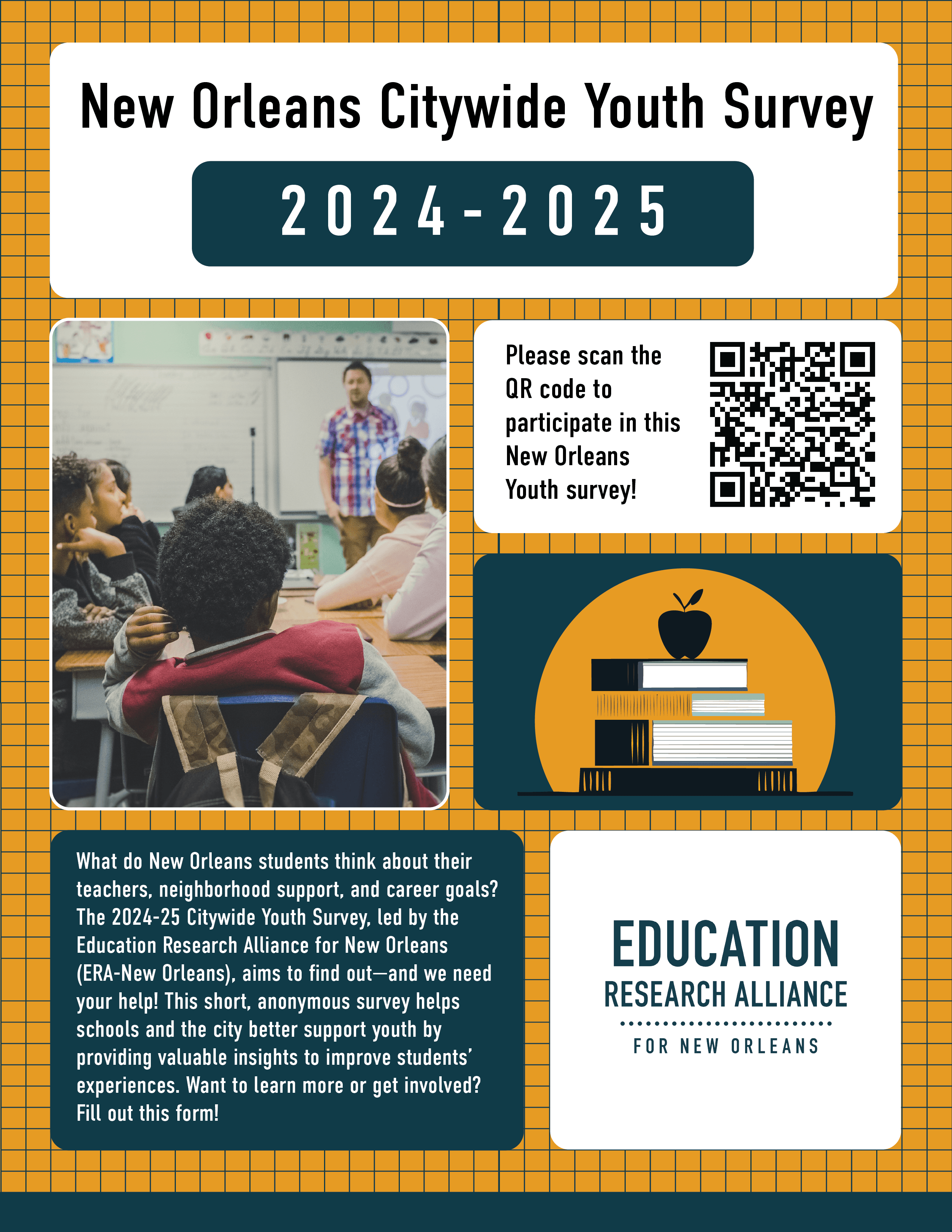 Critical educational data regarding New Orleans schools is often dense, technical, and inaccessible to the students and families it impacts most. The challenge was to make this rigorous research visually inviting to drive participation in a coalition-led initiative.
